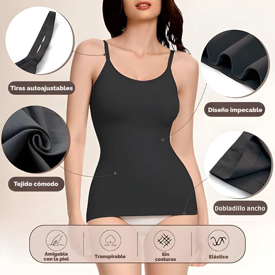 Para nada. El TopSlim Strappy tiene tecnología sin costuras y está hecho con tela ultrafina pero resistente que es completamente invisible bajo cualquier prenda. Puedes usarla con blusas ajustadas, vestidos pegados, camisetas blancas o lo que quieras, y nadie va a notar que la traes puesta. Solo van a notar lo espectacular que te ves.